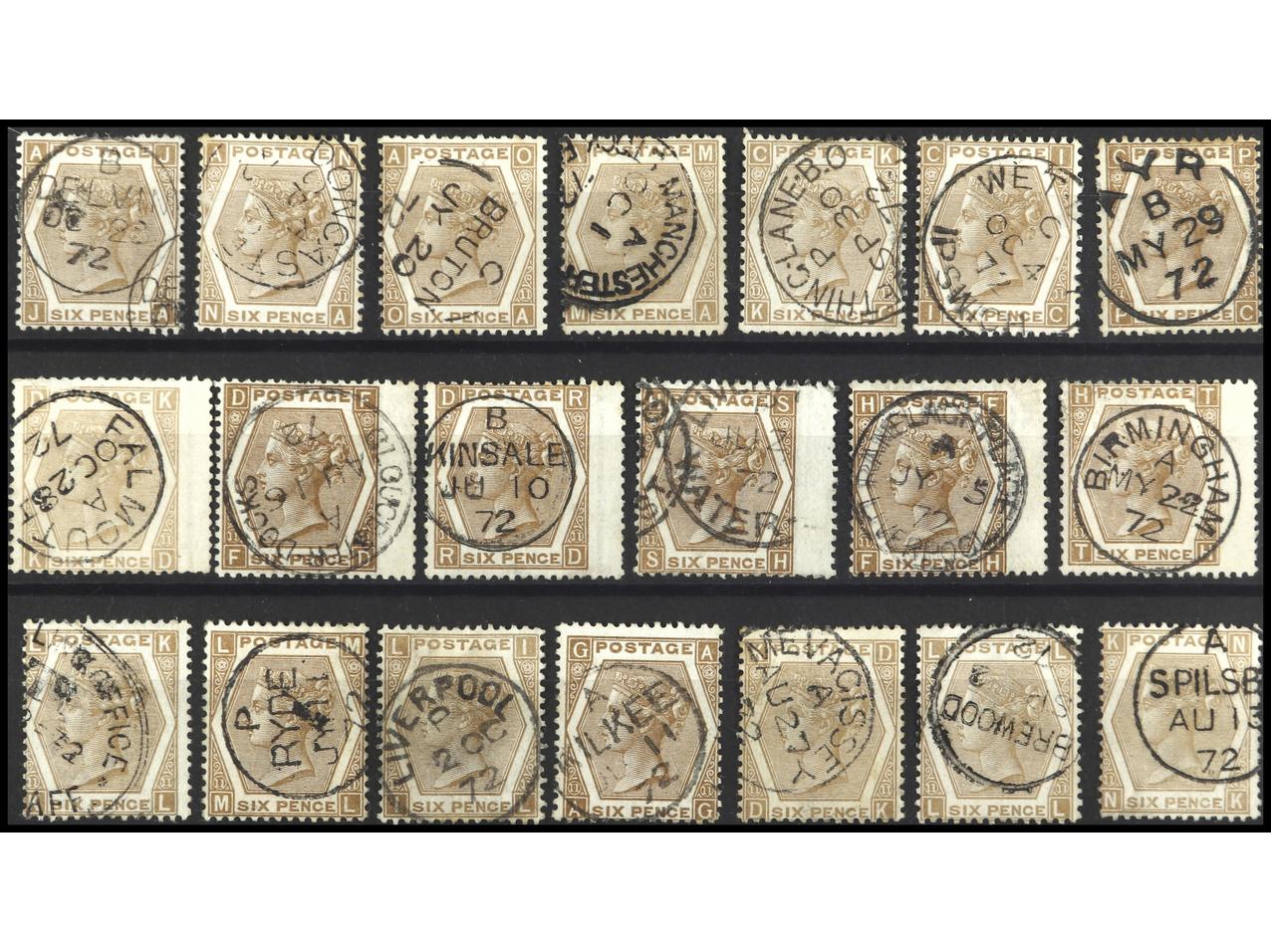 GRAN BRETAÑA. 6 p. castaño. 20 Sellos con diversos matasellos. OCASIÓN. Yv.47(20). Yvert.1.100€. (Image1)