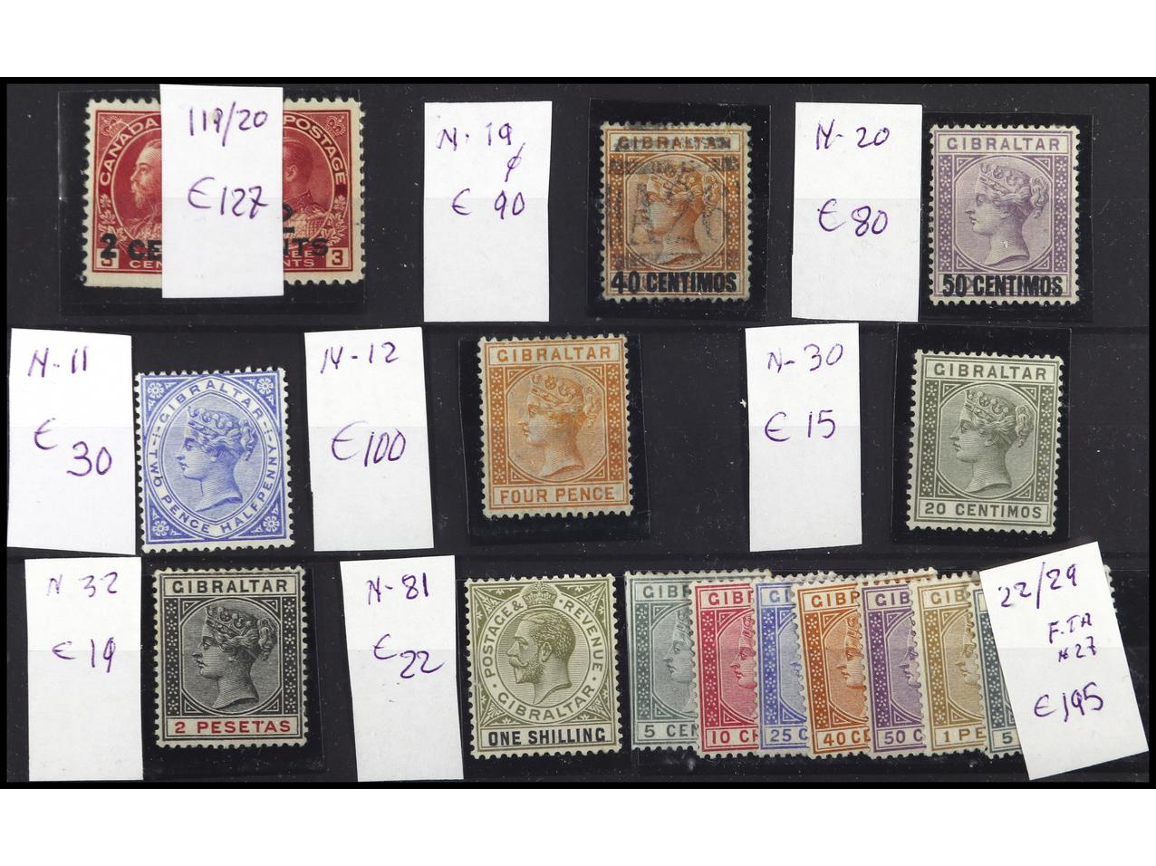 2404 imageCOLONIAS INGLESAS. CANADÁ Y GIBRALTAR. 2 Fichas con sellos de I Centenario. La mayoría en nuevo. A EXAMINAR. (Image1) (Image2) (All Images)