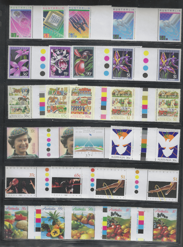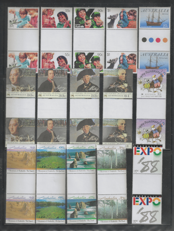 275 nh imageGUTTER PAIRS, 80 Diff. Gutter Pairs, All are MNH, OG, Mostly Cmpt. Sets, Mostly 1986-89 Issues, Sound Cond., VF, SCV is About $250.00 (Image) (image2) (image3) (image4) (All Images)