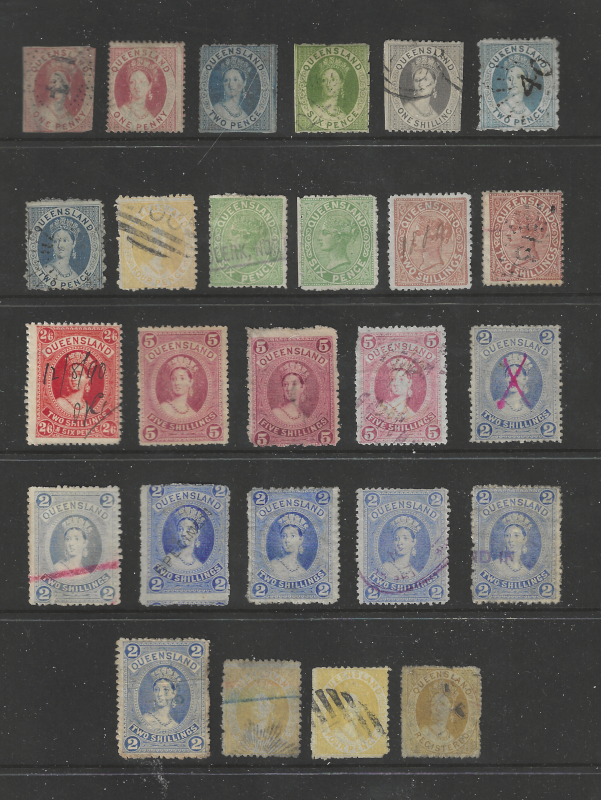 278 O, og imageQUEENSLAND, 26 Stamps, Some Duplication, 1860-85 Period, Mostly Used, Some Mixed Cond., AVG-VF, SCV is About $2,000.00 (Image) 2,000.00E