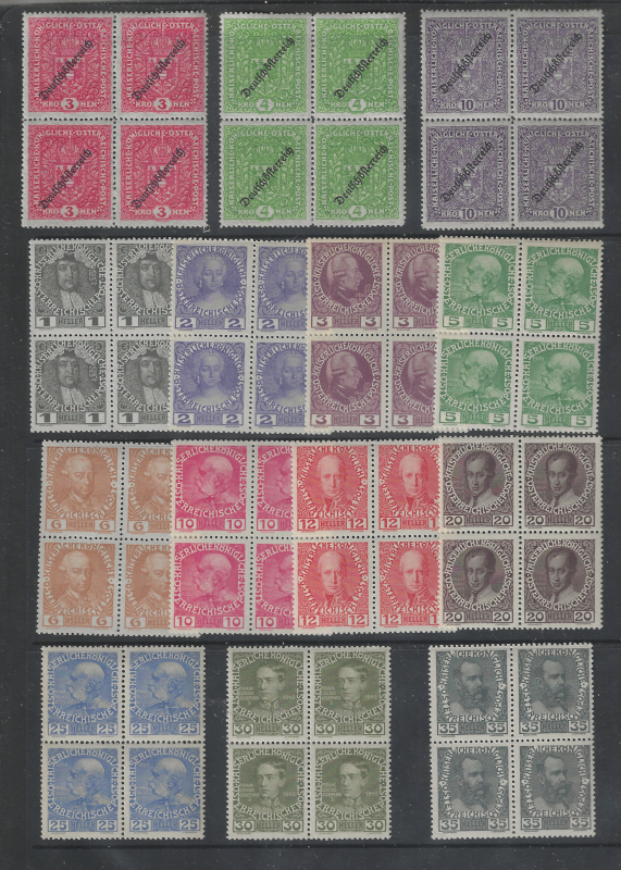279 nh image110-120, 181-199, 30 Diff. Stamps (Each as Blk. of 4), 1908-1919 Issues, All are MNH, OG, Sound Cond, F-VF, SCV is $611.00 (Image) (image2) (All Images)