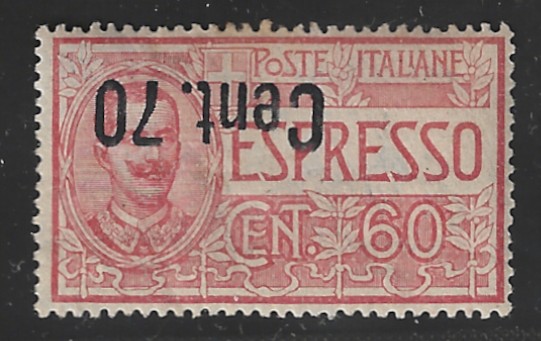 444 og imageE13a Inverted Ovpt., "70 c. on 60 c. Dull Red", 1925 Issue, Mint, OG, Gum Toning, F-VF Centering, SCV is $340.00 (Image) 340.00