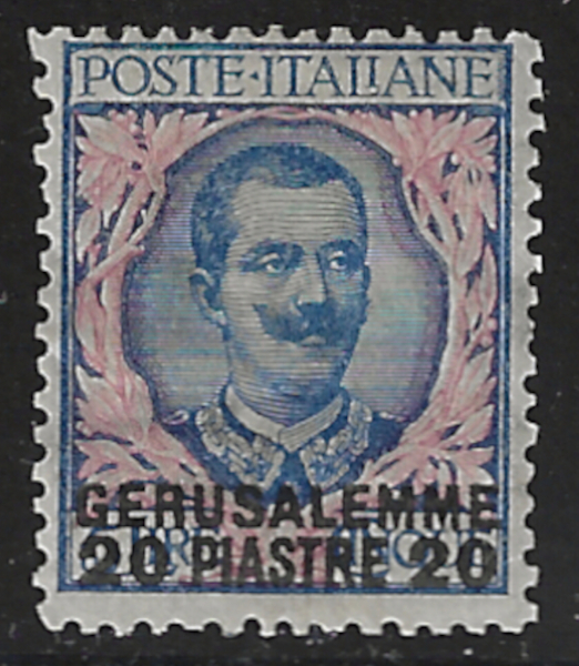 450 og imageJERUSALEM, #7, "20 pi. on 5 l. Blue & Rose", 1909-11 Issue, Mint, Sound Cond., OG, Hinged, Fine, SCV is $1,250.00 (Image) 1,250.00
