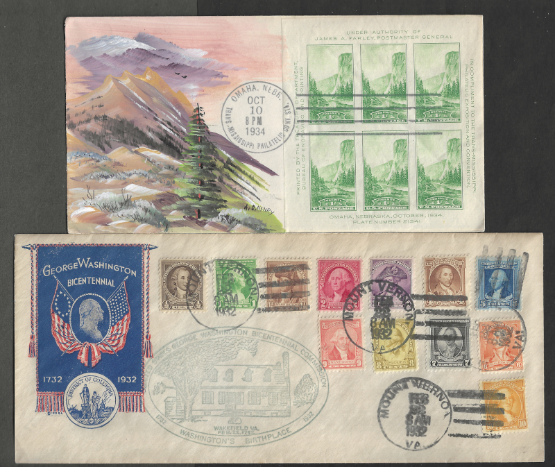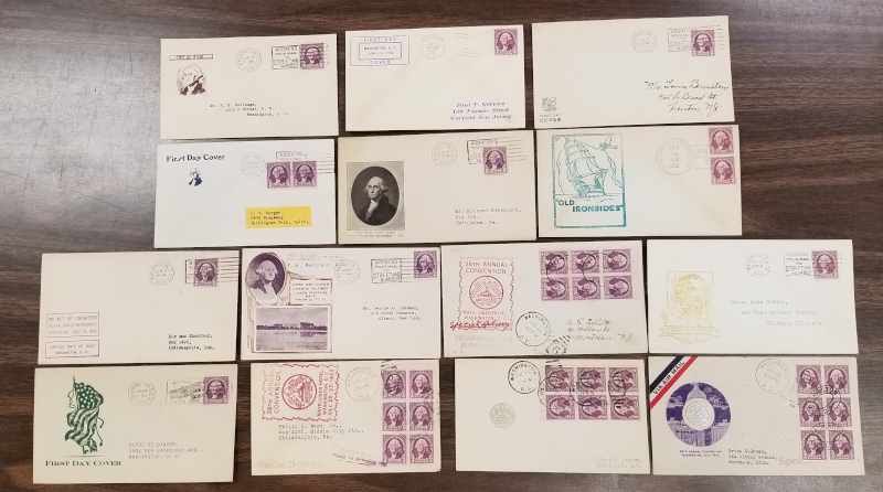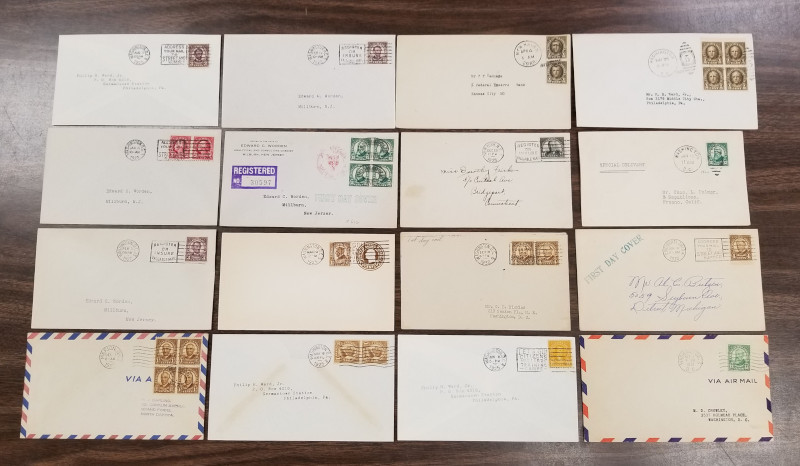 209 c image704 // 907, 13 Diff. Cacheted F.D.C.'s, 1932-43 Issues, Includes "Washington Bicentennial" Set (Cmpt. on Single Cover) and 9 Souv. Sheets, Sound Cond., VF, SCV is About $1,100.00 (Image) (image2) (image3) (All Images)