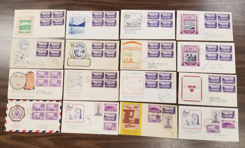 216 c image799-802 (4), "Territory", 1937 Issue, 204 Diff. Cacheted F.D.C.'s, Includes 3 Covers with Cmpt. Sets and 51 Covers with Blks. of 4, Sound Cond., F-VF, SCV is About $2,300.00 (Image) (image2) (image3) (image4) (image5) (All Images)