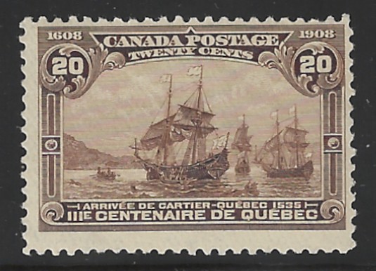 242 nh image103 "20 c. Quebec" (1908 Issue), MNH, OG, Sound Cond., F-VF, SCV is $825.00 (Image) 825.00