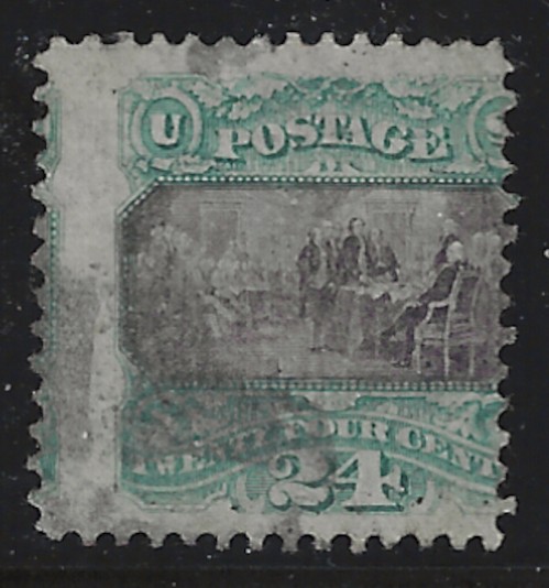 21 O image120 "24 c. Green & Violet", 1869 Issue, Used, Sound Cond., Poor Centering (Almost an E.F.O. Item), SCV is $675.00 (Image) 675.00