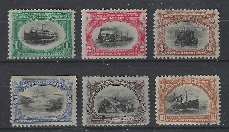 34 og image294-299 (6), "Pan-American" Set Cmpt., 1901 Issues, Mint, Sound Cond., OG, HR, F-VF, SCV is $378.00 (Image) 378.00