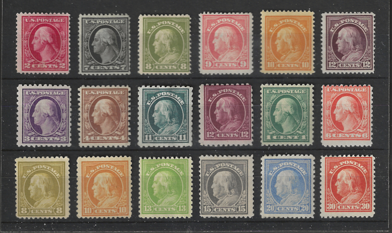 45 og image406 // 516, 18 Diff. Mint Stamps, 1912-19 Issues, Sound Cond., OG, Many are LH, Mostly F-VF, SCV is $523.50 (Image) 524.00