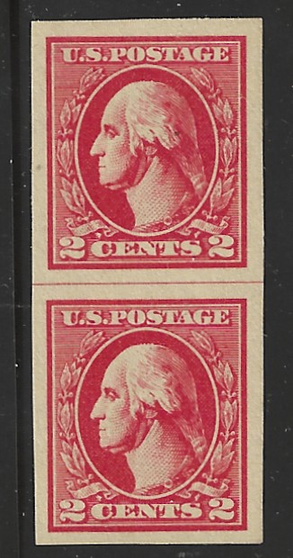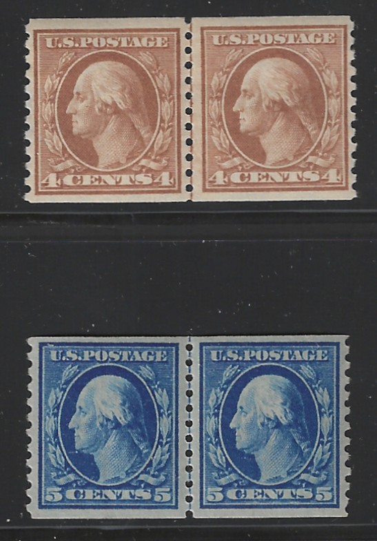 47 og image446, 447, "4 c. & 5 c. Washington", Coil Line Pairs, 1914-15 Issues, Mint, OG, LH, F-VF, Both Pairs Measure 24 mm. High, Offered "As Is", SCV is $940.00 (for Genuine Coil Line Pairs) (Image) 940.00