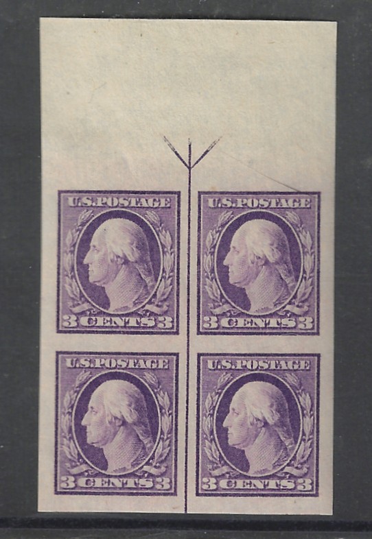 49 nh image483 "3 c. Violet", Type I, 1917 Issue, Top Margin Arrow Blk. of 4, Imperf., MNH, OG, Sound Cond., Superb, Large Margins, SCV is $200.00 (for Superb) (Image) 200.00E