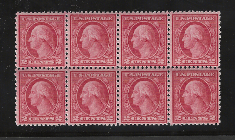 56 nh image540 "2 c. Carmine Rose", Type III, Perf. 11 x 10 (Coil Waste), 1919 Issue, Blk. of 8, Bottom Row Imperf. at Bottom (Unusual Variety), Some Blunt Perfs. at Left, Otherwise Sound Cond., MNH, OG, Fine Centering, SCV is $230.00 (Two Blks. of 4) (Image) 230.00+
