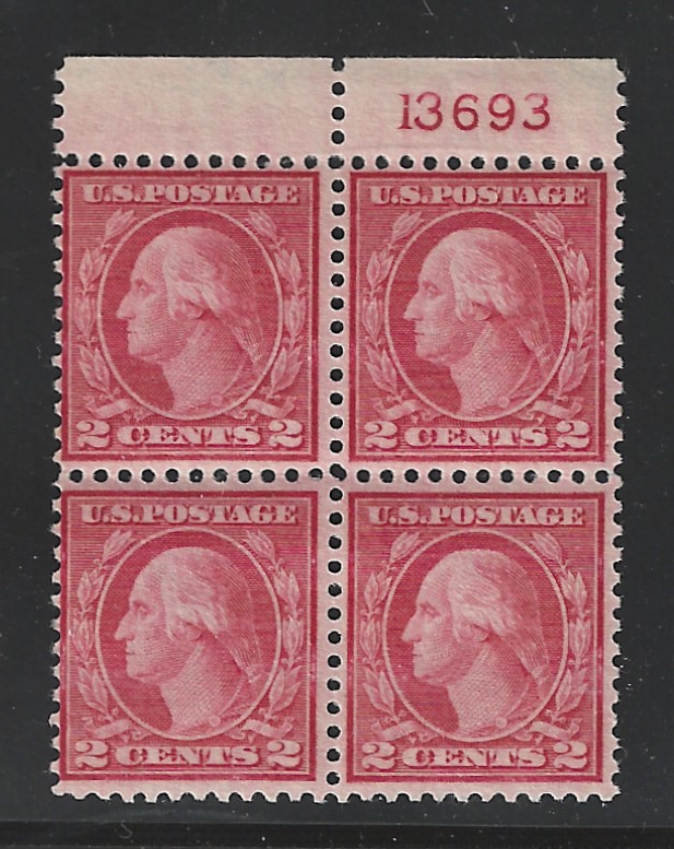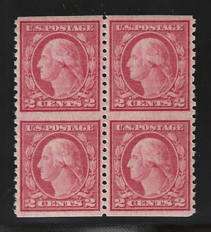 59 nh image546 "2 c. Carmine Rose", Type III, Rotary Press Coil Waste, Perf. 11, Top Margin P# Blk. of 4, MNH, OG, Sound Cond., F-VF, with "Wm. Crowe" Cert. Stating "Genuine, OG, MNH", SCV is $1450.00 (Image) (image2) (All Images)