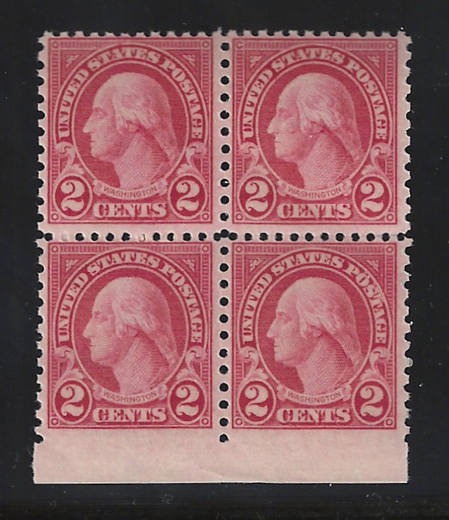 60 nh image579 "Coil Waste", Perf. 11 x 10, Blk. of 4, "2 c. Carmine", MNH, OG, Sound Cond., Bottom Pair is Imperf. at Bottom, Scarce Variety, F-VF, SCV is About $600.00 (Image) 600.00E