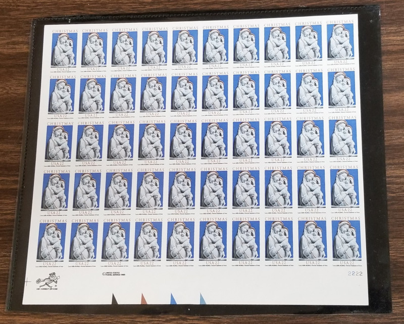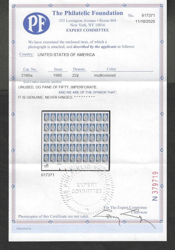 100 nh image2165a "Christmas" (1985 Issue), Imperforate, Cmpt. Sheet of 50 Stamps, MNH, OG, Sound Cond., XF, With "PF" Cert. Stating "Genuine, MNH", SCV is $1,375.00 (for 25 Imperf. Pairs) (Image) (image2) (All Images)