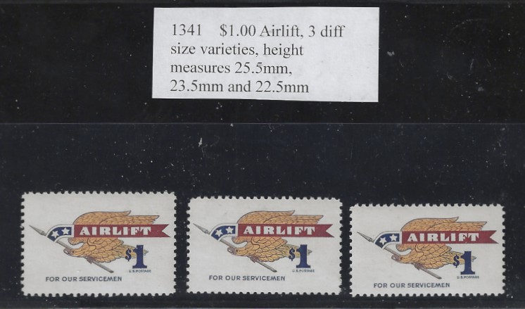 94 nh image1341 (x 3), Perforation Variations, 3 Stamps, Each with a Diff. Height (22.5 mm. to 25.5 mm.), MNH, OG, Sound Cond., VF, "$1.00 Airlift" (1968 Issue) (Image)