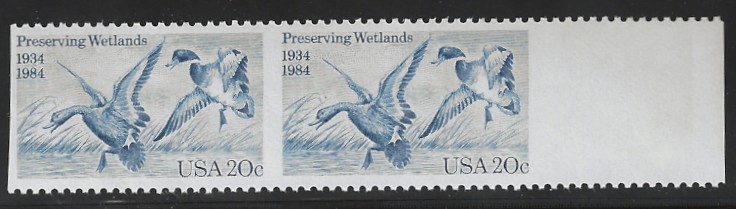 98 nh image2092a Horiz. Pair, Imperf. Vertically (with Wide Right Margin), "Water Fowl" (1984 Issue), MNH, OG, Small Thin (Bottom of Left Stamp), VF, With "PF" Cert. Stating "Genuine", SCV is $275.00 (Image) (image2) (All Images)