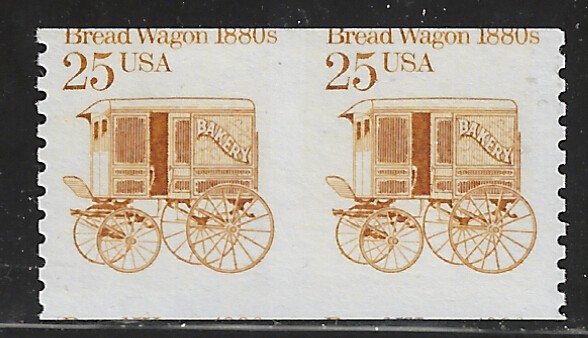 99 nh image2136b Coil Pair, Imperf. Between, Slight Miss-Cut, "25 c. Bread Wagon" (1986 Issue), MNH, OG, Sound Cond., F-VF for Item, SCV is $525.00 (Image) 525.00
