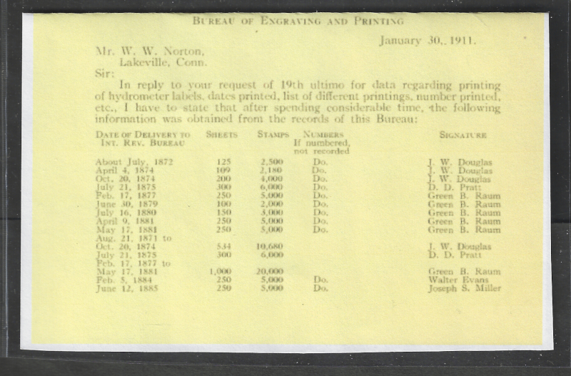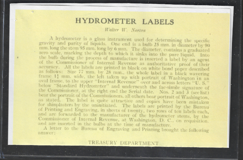 108 og imageHYDROMETER Label, 1877 Issue, Unused, NGAI, Typical Punched Hole, Small Edge Tears at Bottom, F-VF for Item, Only 5000 were Printed (Bureau of Engraving & Printing Records) (Image) (image2) (image3) (All Images)
