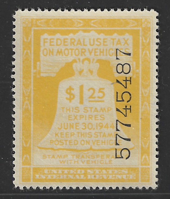 111 nh imageRV27 "$1.25 Yellow", April 1944 Issue, Sound Cond., MNH, VF, SCV is $67.50 (Image) 68.00