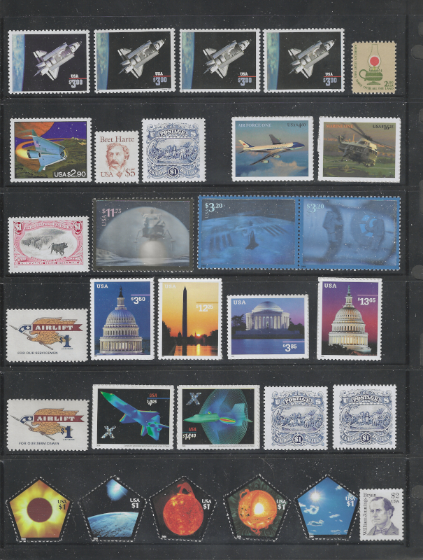 225 nh image"DOLLAR" Values, 35 Mint Stamps, $1.00 to $16.25, Sound Cond., All are MNH, VF, Face Value is $151.85 (Image) 152.00F