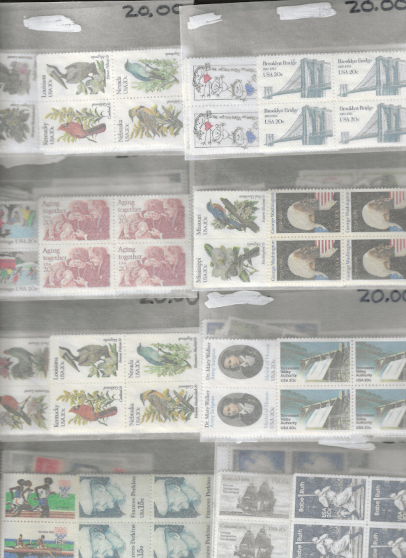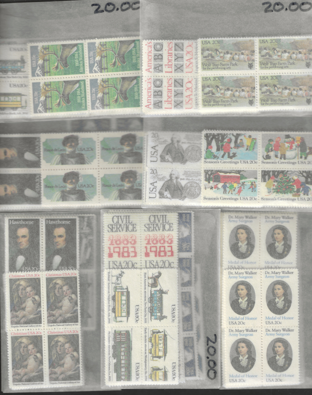 229 nh imageACCUMULATION, 1,500 Mint Stamps, Sorted & Counted in Glassines, Mostly Blks. of 4, All are 20 c. & 25 c. Values, Sound Cond., OG, MNH, F-VF, Face Value is $330.00 (Image) (image2) (All Images)