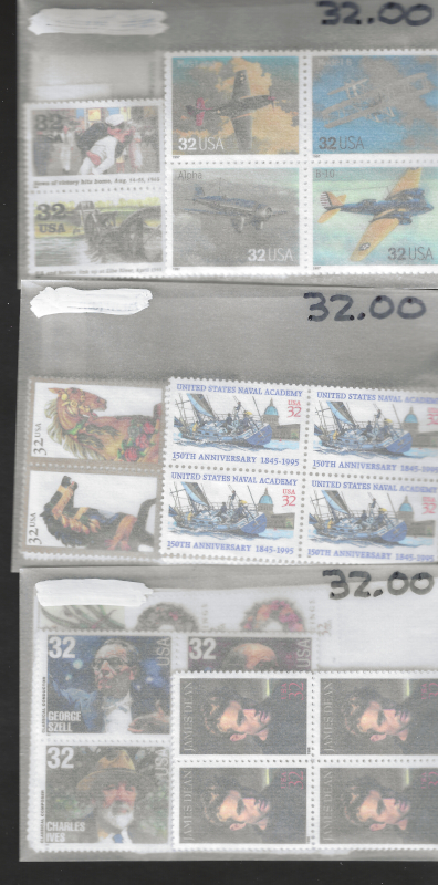 241 nh imageACCUMULATION, 1,100 Mint Stamps, Sorted & Counted in Glassines, 32 c. to 39 c. Values, Sound Cond., MNH, VF, Face Value is $374.00 (Image) (image2) (All Images)