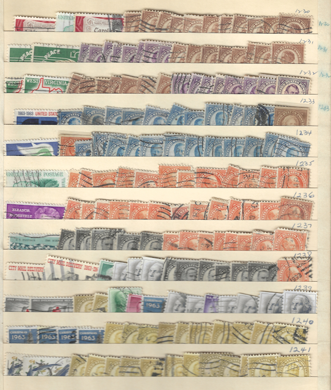 242 nh imageACCUMULATION, 2,100 Mint Stamps, Sorted & Counted in Glassines, 13 c. to 25 c. Values, Sound Cond., OG, MNH, F-VF, Face Value is $375.00 (Image) (image2) (image3) (All Images)