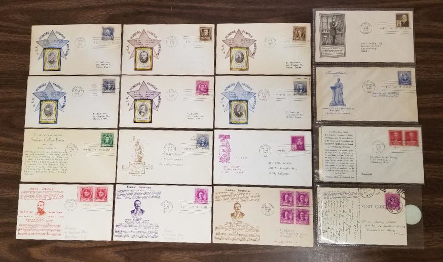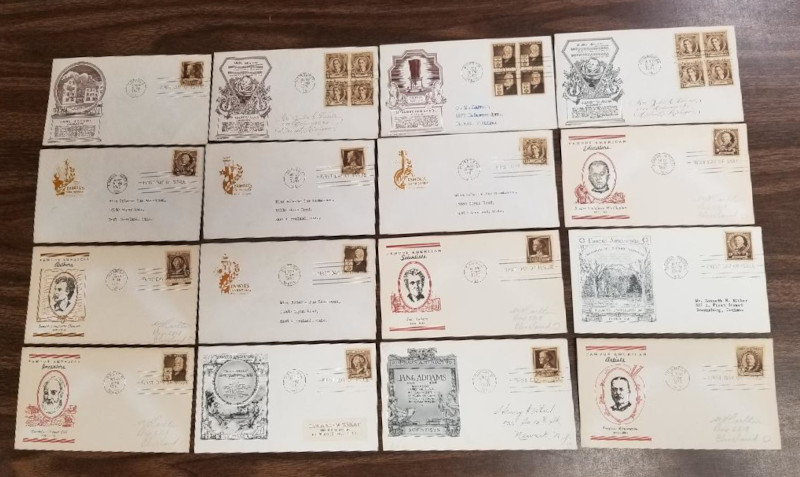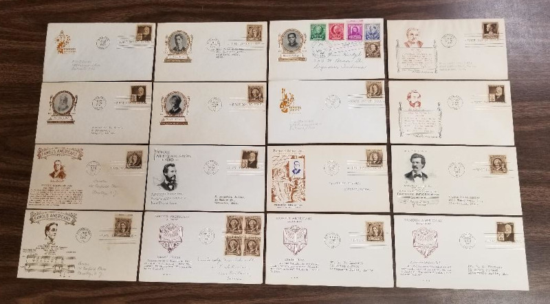 257 c image859 // 893, 1940 "Famous American" Issue, 52 Better F.D.C.'s, All with Cachet, Mostly Diff., Includes a Picture Postcard with #886 (with Sept.10, 1940 Cancel, which is 6 Days Early), Includes Many First Cachets, Sound Cond., F-VF, SCV is About $1,000.00 (Image) (image2) (image3) (All Images)