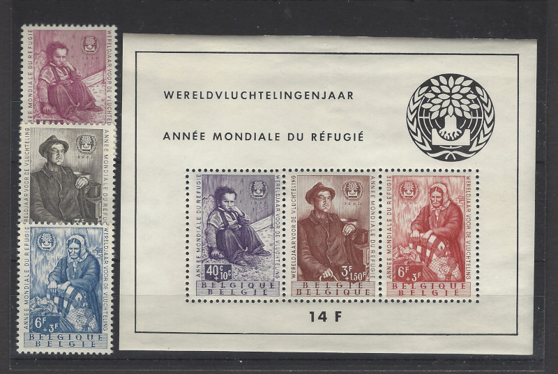 323 nh imageB660-B662a (4), "World Refugee Year", Cmpt. Set with Souv. Sheet, 1960 Issue, Sound Cond., OG, MNH, F-VF, SCV is $71.75 (Image) 72.00
