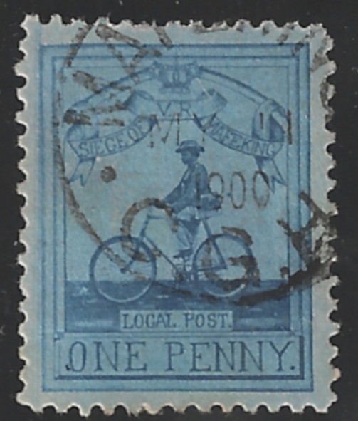 327 O image178 "Mafeking" (1900 Issue), "Major Goodyear", 1 p. Blue on Blue Paper, Used, C.D.S. Cancel, Stamp with "I" Wmk., Sound Cond., VF, SCV is $425.00 (Image) 425.00