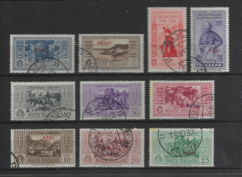 390 O imageRHODES, #45-54 (10), "Garibaldi" Set Cmpt., 1932 Issue, Used, C.D.S. Cancels, Sound Cond., F-VF, SCV is $350.00 (Image) 350.00