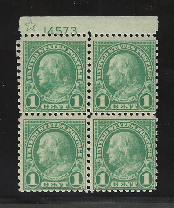 63 nh image578 "1 c. Green" (1923 Issue), Top Margin P# Blk. of 4 (with Star), Rotary Press Coil Waste, Perf. 11 x 10, Unused, OG, MNH, Sound Cond., Fine, SCV is $1500.00 (Image) 1,500.00