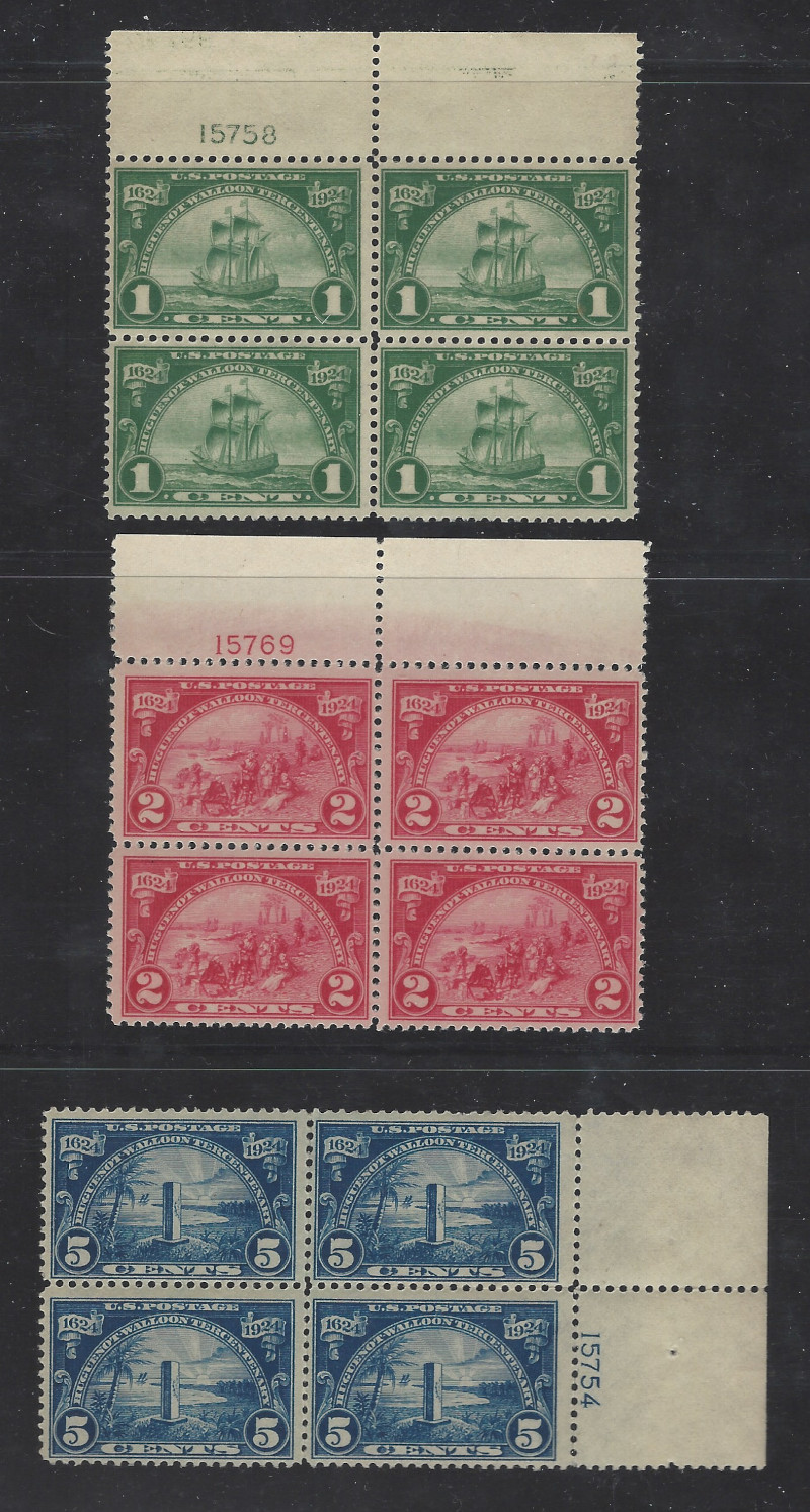 65 nh image614-616 (3), "Huguenot-Walloon" (1924 Issue), Cmpt. Set, Each as Blk. of 4 with P#, MNH, OG, #616 with Some Printing Off-Set on Gum, Generally Sound Cond., F-VF, SCV is $146.00 (As MNH Singles) (Image) 146.00+