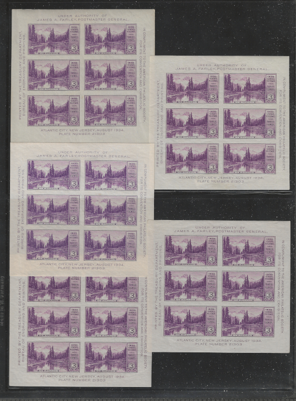 70 og image730, 731, 735, 750, 751, Five Diff. Souv. Sheets (5 of Each), Sound Cond., Unused, NGAI or OG, Mostly LH, VF, SCV is $400.00 (Image) (image2) (image3) (image4) (image5) (All Images)