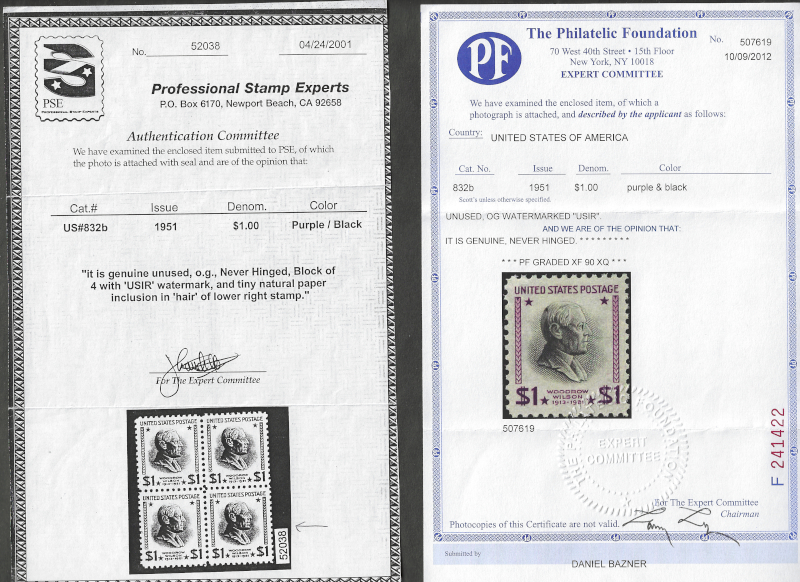 74 nh image832b "$1.00 Purple & Black", Watermarked "USIR", 1951 Issue, Unused, OG, MNH, Graded XF 90, With 2001 "PSE" Cert. and 2012 "PF" Cert., Stating "Genuine, Never Hinged", SCV is $300.00 (Grade XF) (Image) (image2) (All Images)