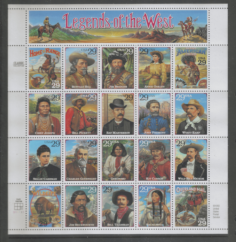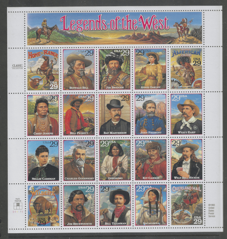 76 nh image2869, 2870, "Legends of the West", Recalled & Normal Mini-Sheets (20 Stamps Each), Sound Cond., OG, MNH, VF, SCV is $140.00 (Image) (image2) (All Images)