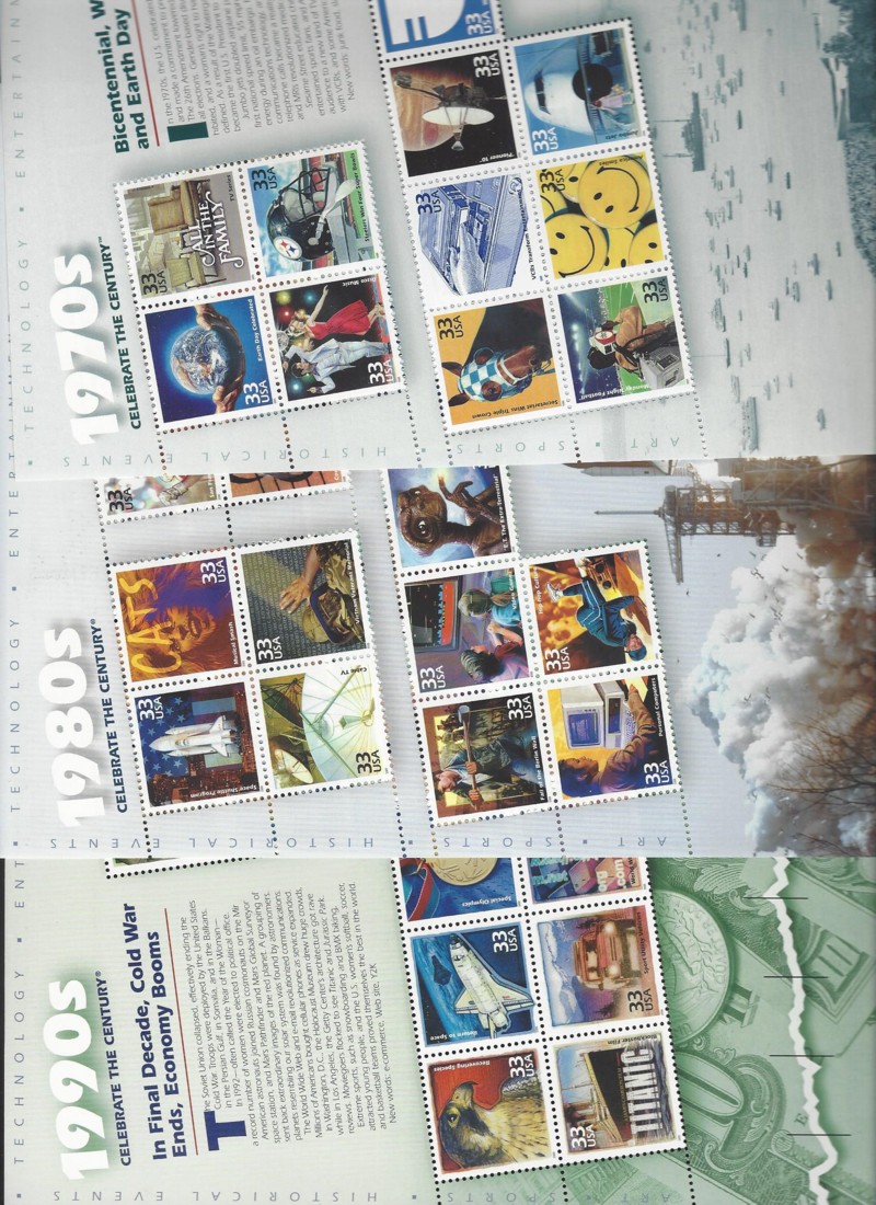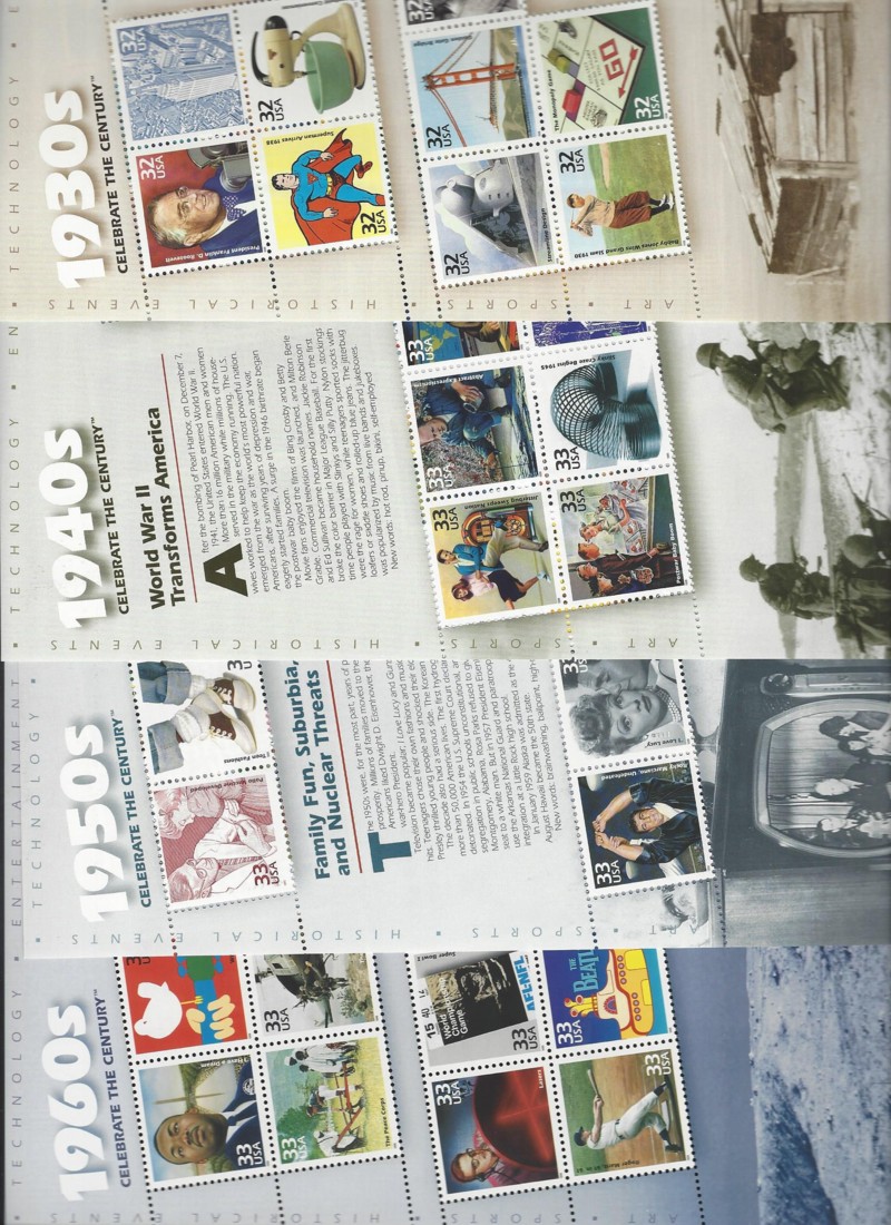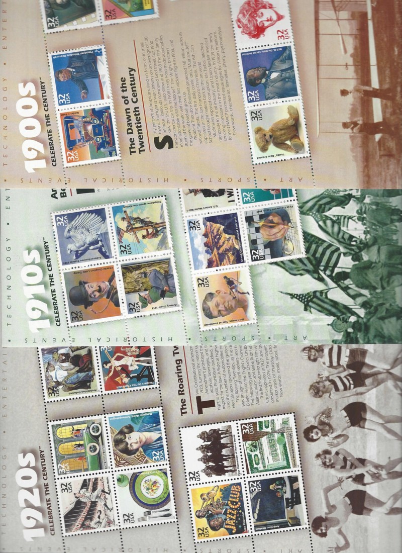 77 nh image3182-3191 (10), "Celebrate the Century", 2 Cmpt. Mint Sets (10 Diff. Mini-Sheets Each), Sound Cond., OG, MNH, VF, SCV is $246.00, Face value is $97.80 (Image) (image2) (image3) (All Images)