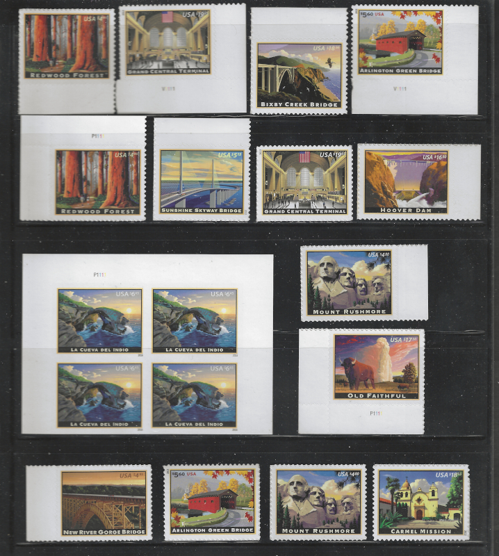 79 nh image4268 // 5040a, "American Landmarks," 18 Mint Stamps, 2008-16 Issues, Slight Duplication, Sound Cond., All are MNH, VF, Face Value is $177.75 (Image) 178.00