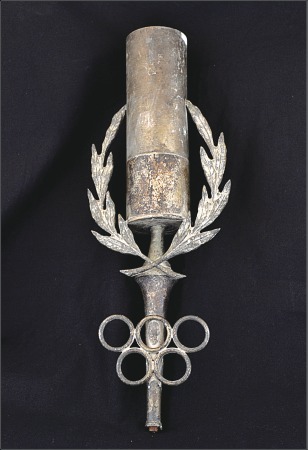 40186   imageca.1924 Torch with Olympic Rings and laurel branches, 39cm, unusual and rare