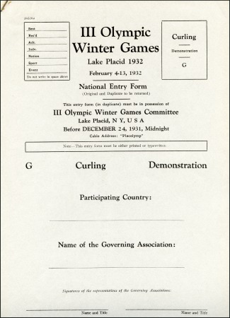 40283   imageOfficial entry form (unused) for the Curling demonstration event, 217x355mm, 3 pages (one original, one duplicate and one triplicate), very fine