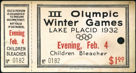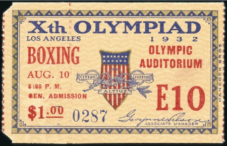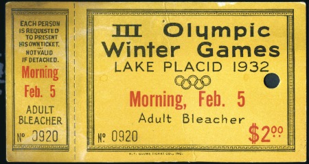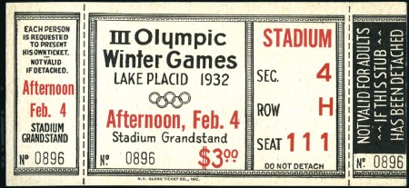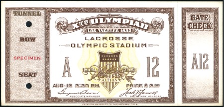 40302   imageCombined with 115326 Tickets: Lacrosse in the Olympic Stadium – Aug. 12, with SPECIMEN ovpt & control punches, fine