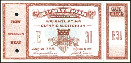 40305   imageCombined with 115326 Tickets: Weightlifting in the Olympic Auditorium – July 31, with SPECIMEN ovpt & control punches, fine