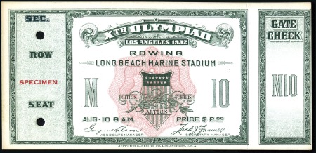40306   imageCombined with 115326 Tickets: Rowing in the Long Beach Marine Stadium – Aug. 10, with SPECIMEN ovpt & control punches, fine