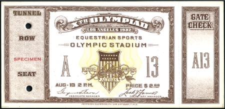 40310   imageCombined with 115326 Tickets: Equestrian Sports in the Olympic Stadium – Aug. 13, with SPECIMEN ovpt & control punches, fine