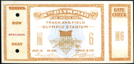 40312   imageCombined with 115326 Tickets: Track and Field in the Olympic Stadium – Aug. 6, with SPECIMEN ovpt & control punches, fine