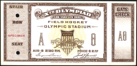 40308   imageTickets: Field Hockey in the Olympic Stadium – Aug. 11, with SPECIMEN ovpt & control punches, fine