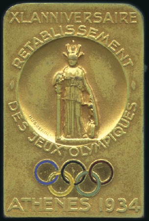 40336   image1934 40th Anniversary Celebration of the Re-Establishment of the Olympic Games pin badge, 28x43mm, gold plated, by Hugeunin