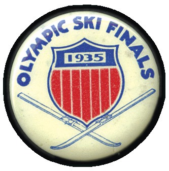 40373   imageUSA Olympic Ski Finals button 1935, 24mm, white celluloid, showing US shield with crossed skis