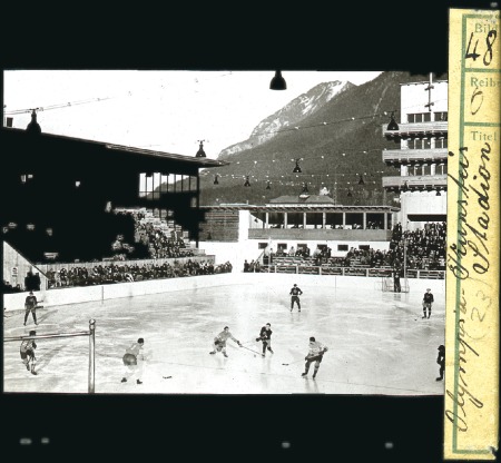 40382   imageGlass slide depciting an ice hockey match at the Olympic stadium, very fine